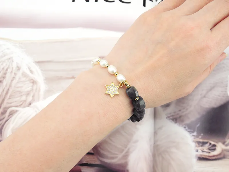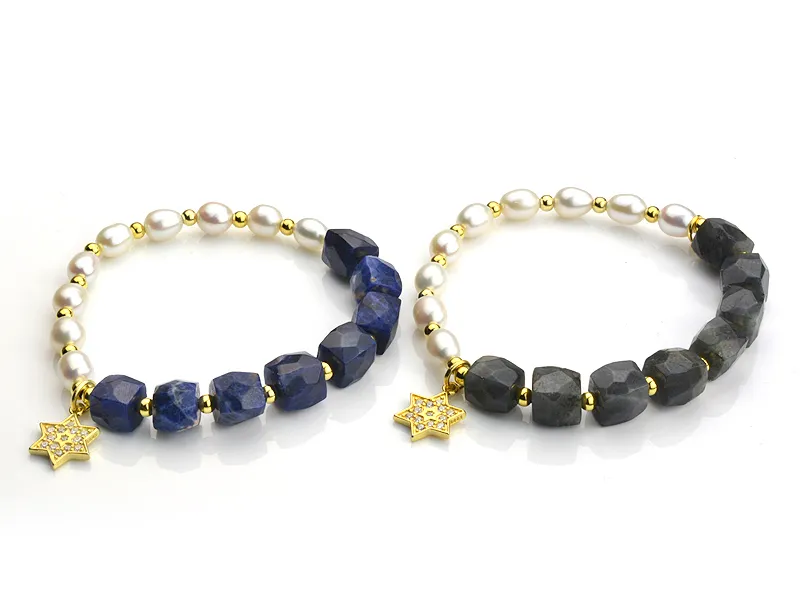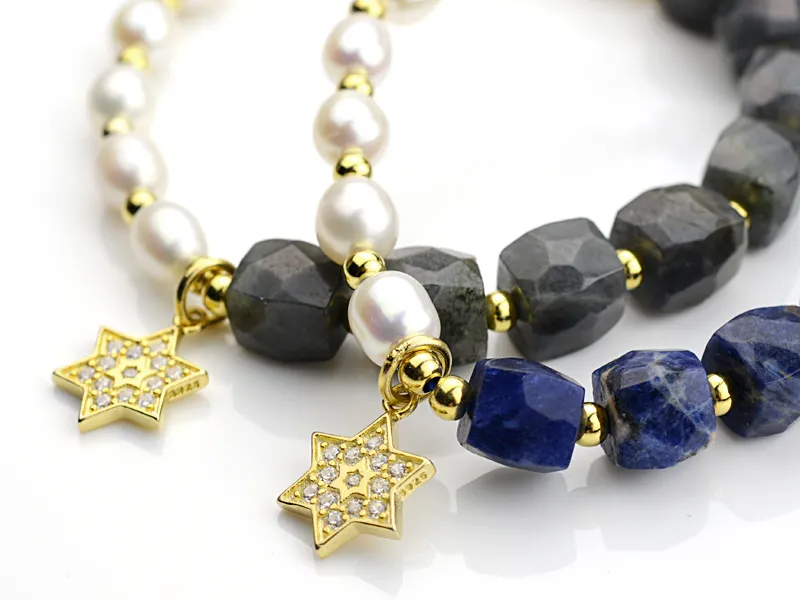 灰月光/藍紋石珍珠星星純銀手鍊