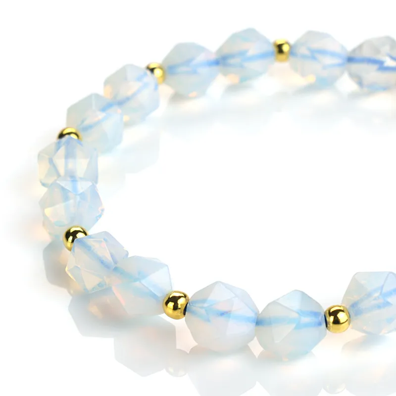 蛋白石鑽切to扣彈性純銀手