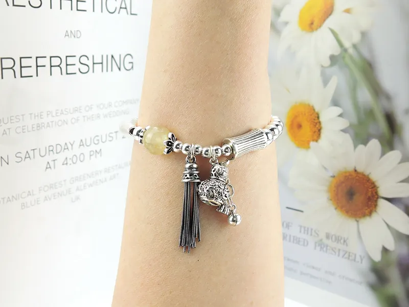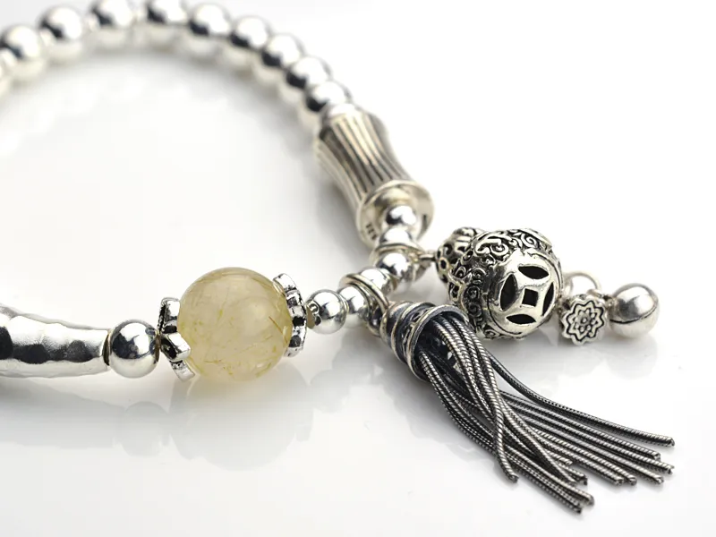 商品說明:高質感的純銀銀管搭配葫蘆流蘇及天然鈦晶穿搭而成配件材質:國際標準925純銀適合手圍:17.5CM以內純銀飾品:李時珍在《本草綱目》中提到,銀具有安撫五臟、平定心神、防止驚悸、驅邪氣等保健效果鈦晶:鈦晶是髮晶家族裡能量最強大的,鈦晶強招財且有六大主能量,主財、偏財、人緣、避邪、健康、防小人。如果想要招偏財(工作以外的收入)的仙女不妨來一條~~~