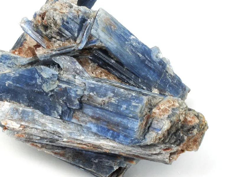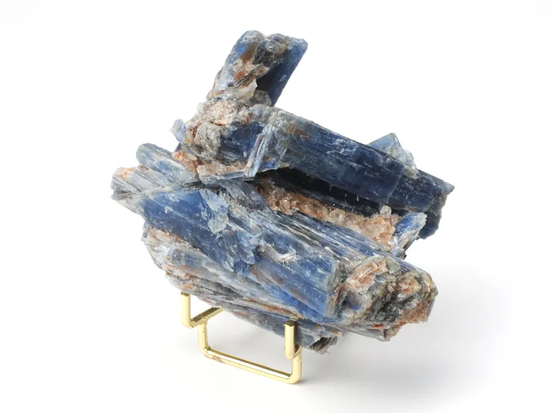 藍晶石屬三斜晶系,顏色呈藍色、綠色、黃色、灰色,晶體內的顏色分佈自然而不均勻。越高等級的藍晶石,色藍、體透、帶強烈的貓眼效應,而且雜色斑塊較少的更為罕有,色藍飽和度高為佳。