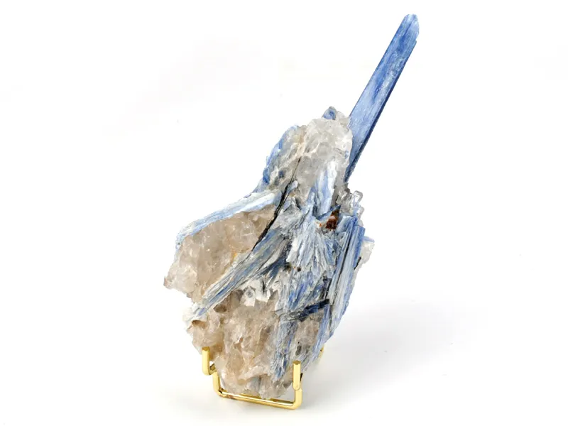 藍晶石屬三斜晶系,顏色呈藍色、綠色、黃色、灰色,晶體內的顏色分佈自然而不均勻。越高等級的藍晶石,色藍、體透、帶強烈的貓眼效應,而且雜色斑塊較少的更為罕有,色藍飽和度高為佳。