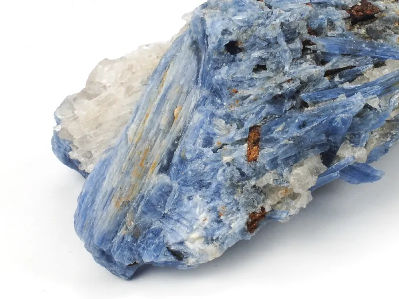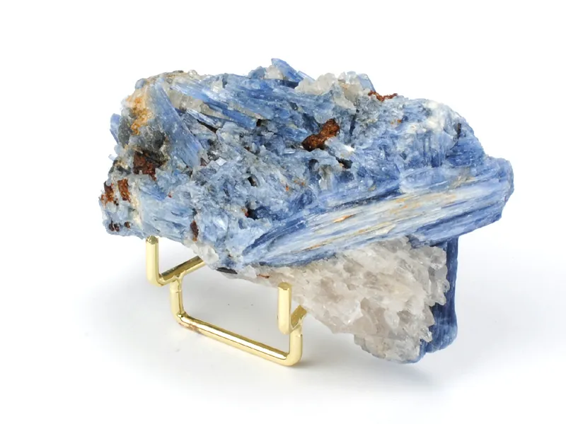 藍晶石屬三斜晶系,顏色呈藍色、綠色、黃色、灰色,晶體內的顏色分佈自然而不均勻。越高等級的藍晶石,色藍、體透、帶強烈的貓眼效應,而且雜色斑塊較少的更為罕有,色藍飽和度高為佳。