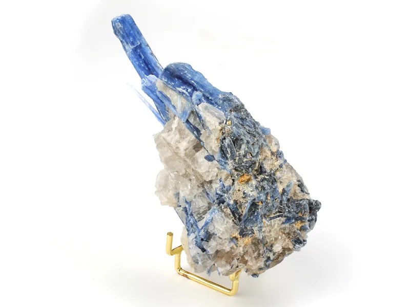 藍晶石屬三斜晶系,顏色呈藍色、綠色、黃色、灰色,晶體內的顏色分佈自然而不均勻。越高等級的藍晶石,色藍、體透、帶強烈的貓眼效應,而且雜色斑塊較少的更為罕有,色藍飽和度高為佳。