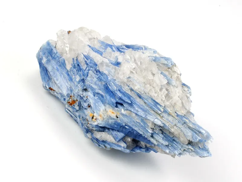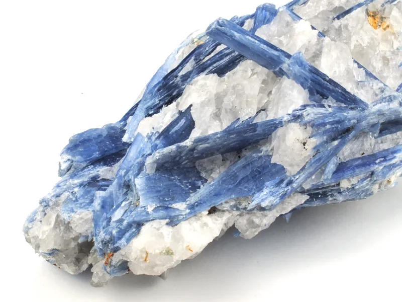 藍晶石屬三斜晶系,顏色呈藍色、綠色、黃色、灰色,晶體內的顏色分佈自然而不均勻。越高等級的藍晶石,色藍、體透、帶強烈的貓眼效應,而且雜色斑塊較少的更為罕有,色藍飽和度高為佳。
