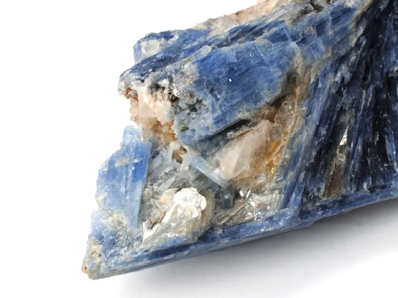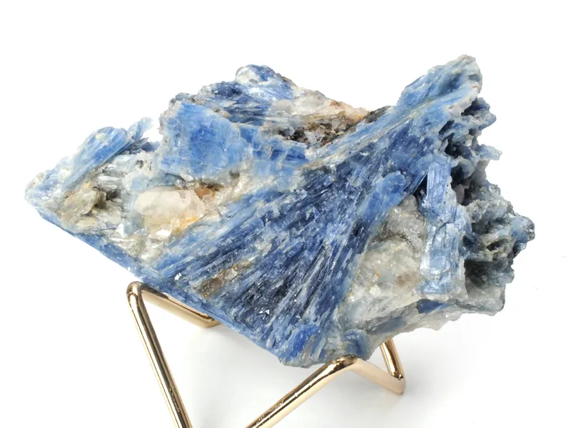 藍晶石屬三斜晶系,顏色呈藍色、綠色、黃色、灰色,晶體內的顏色分佈自然而不均勻。越高等級的藍晶石,色藍、體透、帶強烈的貓眼效應,而且雜色斑塊較少的更為罕有,色藍飽和度高為佳。