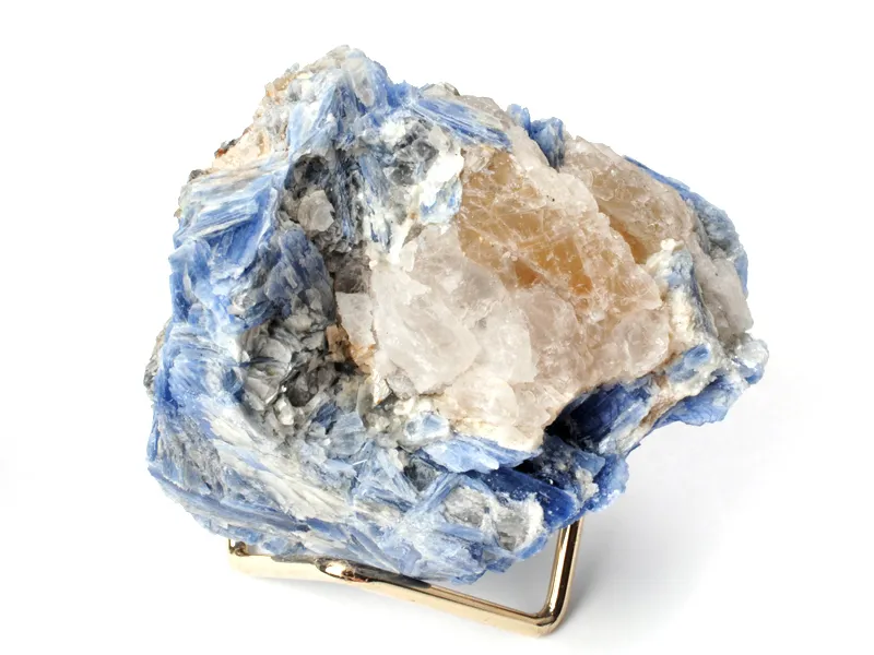 藍晶石屬三斜晶系,顏色呈藍色、綠色、黃色、灰色,晶體內的顏色分佈自然而不均勻。越高等級的藍晶石,色藍、體透、帶強烈的貓眼效應,而且雜色斑塊較少的更為罕有,色藍飽和度高為佳。
